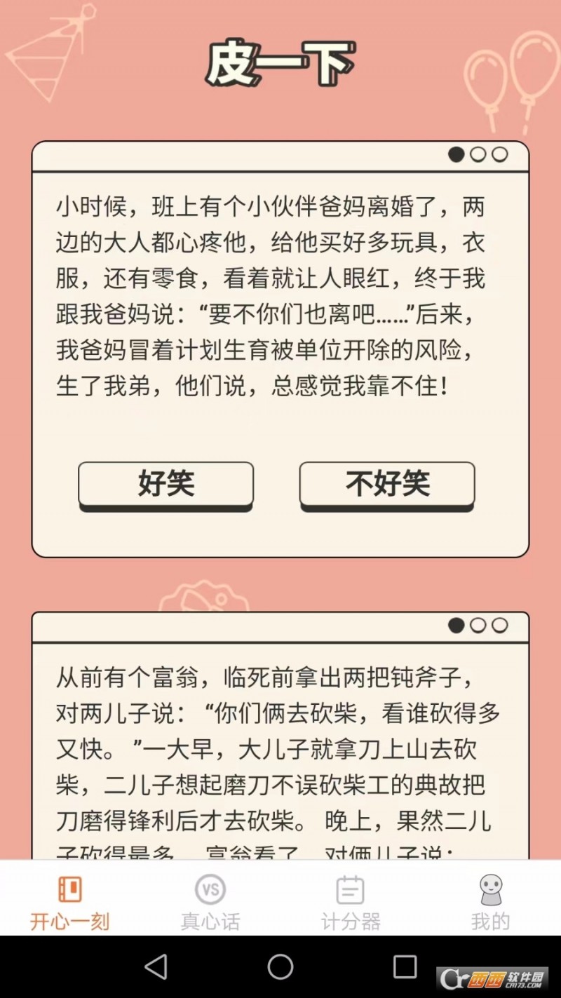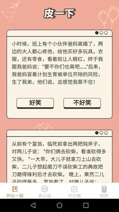 皮皮星球下载软件是一款集搞笑、娱乐、头脑急转弯、大冒险和真心话等兴趣作用于一体的应用程序。它为用户供应了多样多彩的内容,让用户在轻松欢快的环境中度过时光。### 基础简介- 笑话看不停:软件供应海量高质量的笑话内容,每日更新,让用户的每一天都充斥欢笑。- 头脑急转弯闯关乐:应战脑力极限,享受智力带来的有趣。无论是老少皆宜的头脑急转弯标题,照样特殊策划的游戏环节,都能让用户找到属于本人的幸福。- 大冒险等你来:与朋友一块儿玩大冒险游戏,干脆生成冒险选项,轻松风趣。